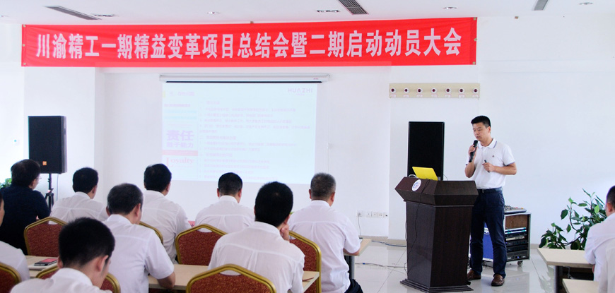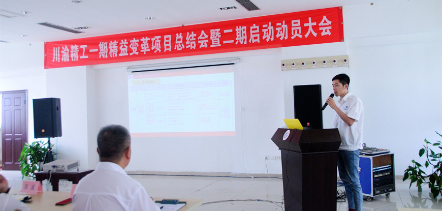 公司總經(jīng)理高翔宣布川渝精工一期精益變革項(xiàng)目總結(jié)會(huì)暨二期啟動(dòng)動(dòng)員大會(huì)
